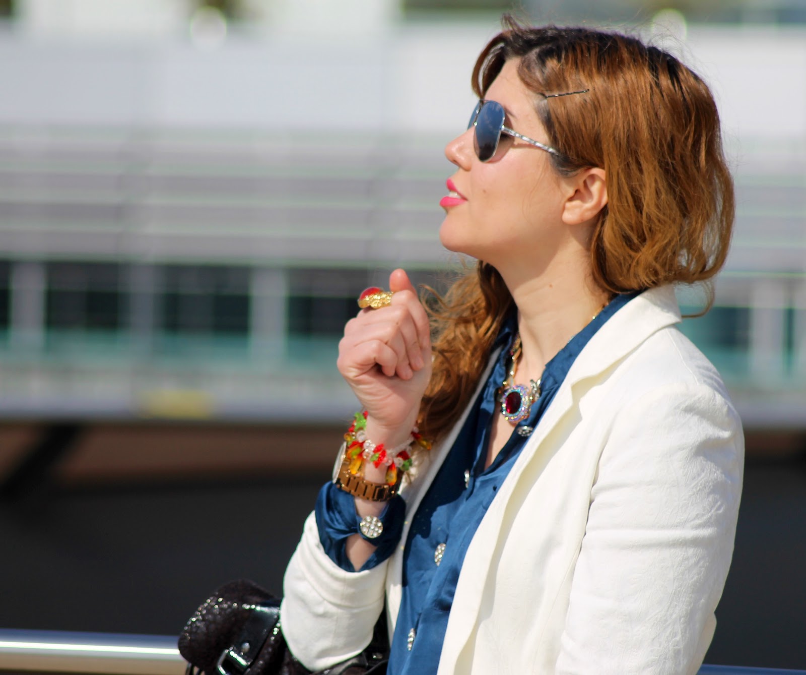 Photography Artur Guro: Blazer and Trousers Topshop, Blouse Made by me, Boots Asos, Collar Butler & Wilson, Watch Michael Kors, Ring YSL and Vintage, Bracelet Made by me and All Saints, Sunglasses Chanel, Bag Miu Miu!!